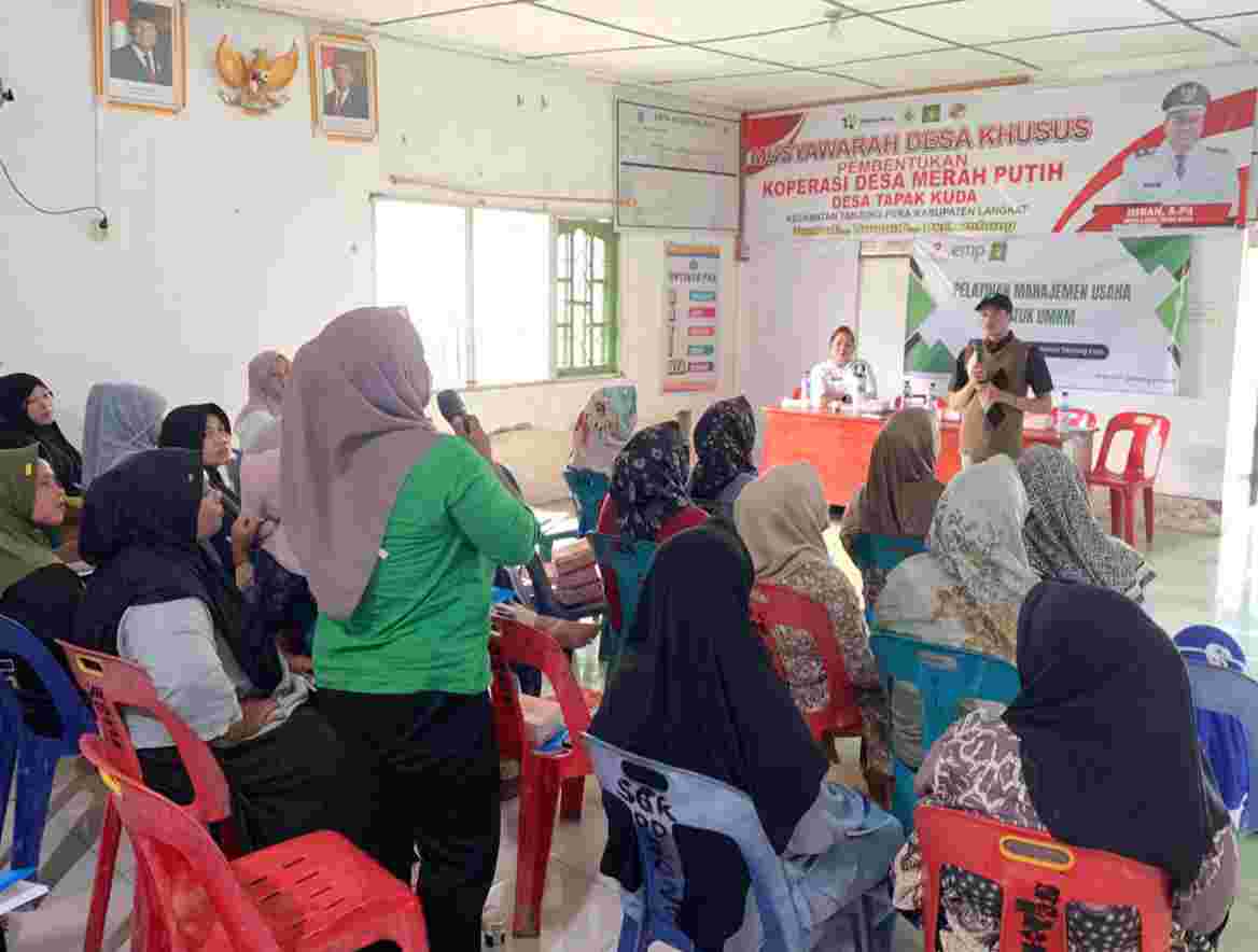 Informasi yang dihimpun, kegiatan tersebut berlangsung di Kantor Desa Tapak Kuda, Kecamatan Tanjung Pura, Kabupaten Langkat, Sumatera Utara, pada Rabu (19/11/2025). Peserta pelatihan berasal dari pelaku kelompok UMKM dari Desa Bubun dan Desa Tapak Kuda.