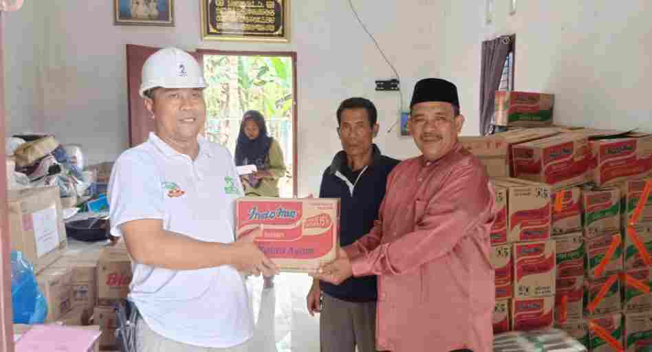 Askep PT Buana Estate, H. Budi Budoyo, SP, menyerahkan Sembako di beberapa desa di Langkat, salah satunya di Desa Cempa, Hinai.